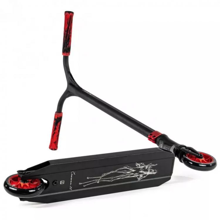 Дека виконана з високоякісного алюмінієвого сплаву, стала ширшою на 6 мм і отримала 14% приріст міцності завдяки покращеній технології екструзії. При цьому її вага зменшилась на 5% у співвідношенні до розміру. Компресійна система IHC, яку було оновлено, не лише полегшує конструкцію, а й забезпечує стабільність та простоту обслуговування. Вилка Legion V2 IHC, інтегровані підшипники Oracle та затискач Valkyria. Модель укомплектована колесами Incube V2 діаметром 110 мм і жорсткістю 88A - оптимальний варіант для плавного катання. Підтримується також установка коліс діаметром до 120 мм. Алюмінієва серцевина витримує інтенсивні навантаження під час трюків і стрибків. Y-подібне кермо сприяє зручному контролю, а нові гріпси Ethic Slim додають комфорту. На задньому колесі встановлено просте, але ефективне флекс-гальмо.