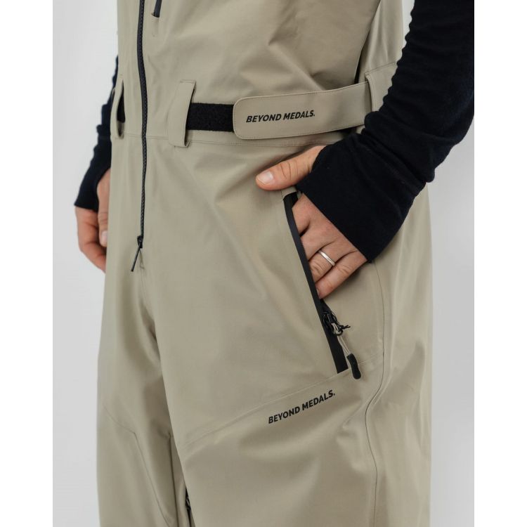 Штани Beyond Medals Tech Bib 3L - це функціональні напівкомбінезонні штани створені для активного катання та перебування в складних погодних умовах. Вони підійдуть для лижників і сноубордистів, яким важливі захист від вологи, комфорт і надійність протягом усього дня. Основні переваги: мембрана 20k для захисту від снігу та дощу, висока паропроникність - тіло залишається сухим навіть під час руху, мембрана з переробленого поліестеру та екологічне PFC-free водовідштовхувальне покриття, проклеєні шви для додаткової герметичності та повна підкладка для комфорту. Штани виготовлені з тришарової тканини, що поєднує міцність і легкість. Вентиляція з внутрішньої сторони штанин допомагає регулювати температуру, а водостійкі блискавки захищають від вологи. Регульовані підтяжки та еластична талія дозволяють точно підігнати посадку. Кілька кишень на блискавках дозволяють зручно зберігати необхідні дрібниці.