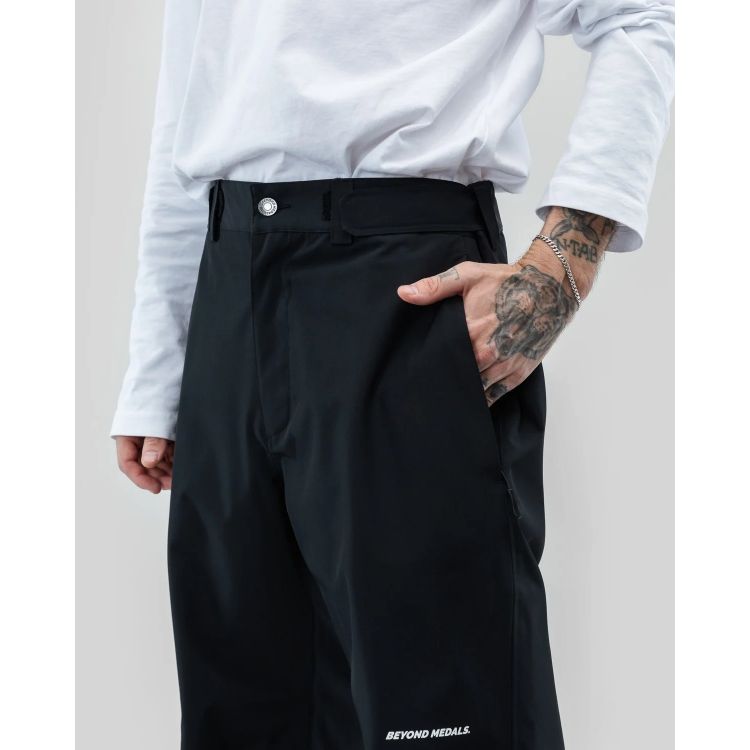 Сноубордичні штани Beyond Medals Tight Pants - створені для райдерів, які віддають перевагу більш приталеній посадці без втрати захисту та комфорту. Підійдуть для катання в різних погодних умовах - від холодних днів до активних сесій на схилі. Штани виготовлені зі 100% переробленого поліестеру з двошаровою конструкцією. Водонепроникність 15k у поєднанні з проклеєними швами та водовідштовхувальним DWR-покриттям без PFC допомагає залишатися сухим навіть під час снігопаду. Матеріал добре пропускає повітря, що знижує перегрів під час активного руху. Модель не має утеплювача, але повністю підкладена для комфорту та універсального використання. Частково еластичний пояс із шльовками для ременя забезпечує зручну фіксацію, а снігозахисні гетри з гачками та блискавки внизу штанин полегшують катання й підлаштування під взуття.