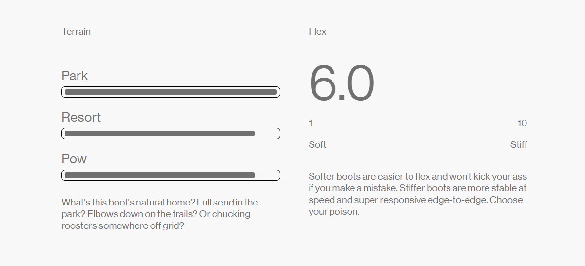 | Future Flex Construction: | це інноваційна технологія, яка дозволяє черевикам для сноубордингу зберігати свою оптимальну гнучкість протягом усього терміну служби. На відміну від традиційних матеріалів, які з часом втрачають свої властивості |