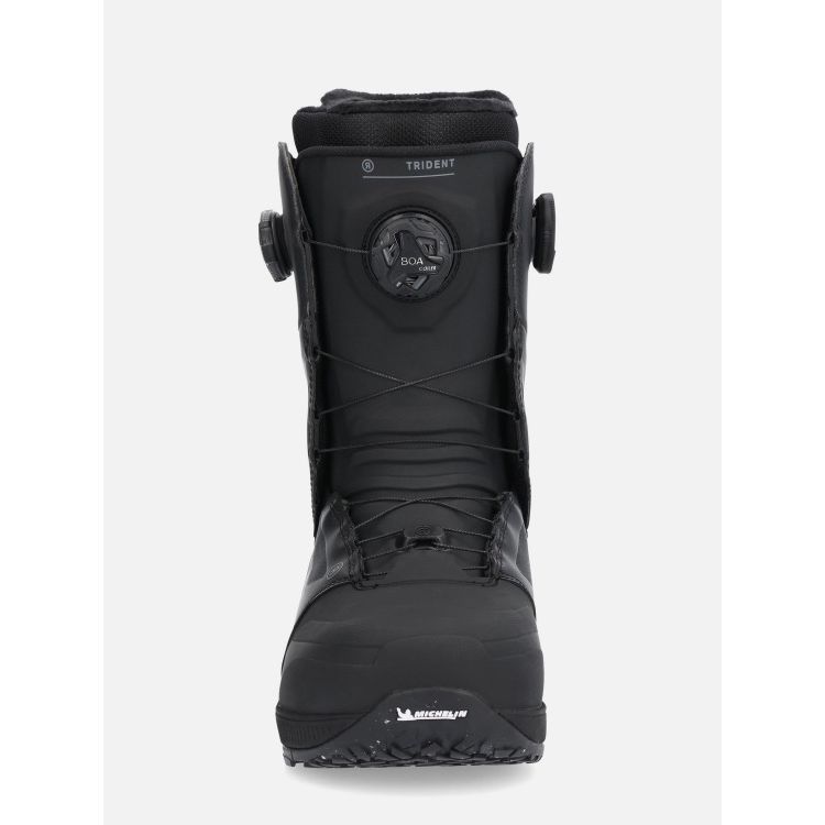 Ride Trident - це жорсткі, високопродуктивні черевики для райдерів, які хочуть максимальної точності та підтримки на будь-якому рельєфі. Вони оснащені внутрішником Intuition™ Dream Liner, що ідеально підлаштовується під стопу, і системою Tongue Tied™ Hybrid Harness у поєднанні з The Closer™, яка забезпечує мікроточне затягування в зоні щиколотки без потреби у класичному внутрішньому хомуті. Така конструкція утримує п’яту на місці, додає контролю на швидкості та покращує передачу енергії на кант. Язик із технологією Flex Slime Tongue™ працює як амортизатор, згладжуючи вібрації та повертаючи енергію під час різких рухів та приземлень. Підошва Michelin® Hybrid Traverse створена для надійного зчеплення: вона не ковзає ні у кріпленнях, ні на льодяній парковці дорогою до підйомника. Триконтурна система шнурівки BOA® дає можливість точно підлаштувати посадку у трьох незалежних зонах: верх, стопа та підйом/щиколотка, що особливо важливо для райдерів, які не можуть підібрати собі зручні черевики з різних причин. Trident - вибір тих, хто вимагає від взуття максимуму: високу жорсткість, повний контроль, передову амортизацію та максмальне підлаштвання під ногу. Це модель для райдера, який не приймає компромісів.