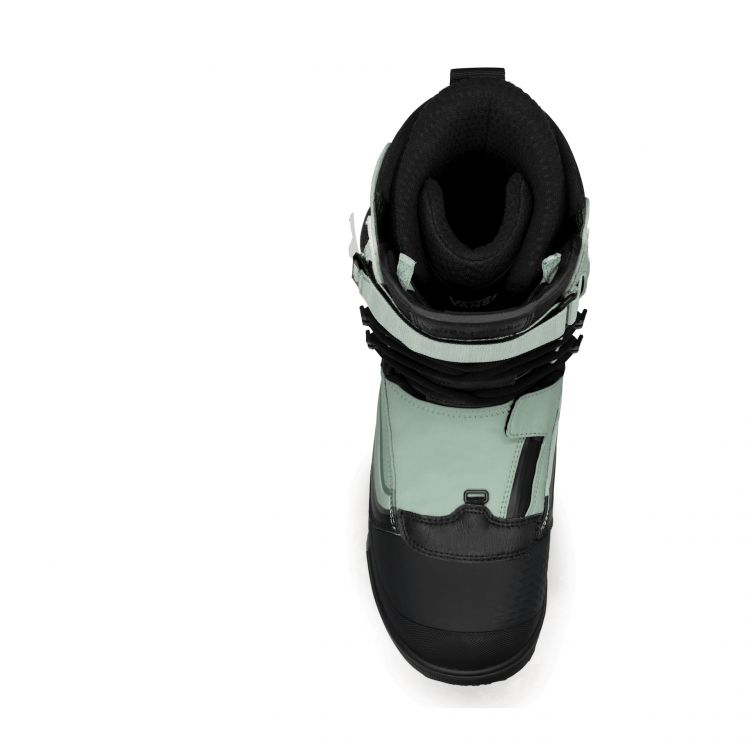 BOA® FIT SYSTEM FEATURING VANS® CUSTOM FOCUS WITH SLIDE GUIDE: | Система Hybrid Plus розширює діапазон регулювання жорсткості порівняно з оригінальною конфігурацією Hybrid BOA®, додаючи додаткову шнурівку BOA®, яка проходить ззаду черевика і через підйом стопи, оптимізуючи лінії натягу і максимізуючи можливості регулювання жорсткості. |