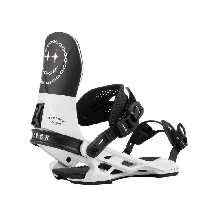 Arbor Hemlock 2025 - це кріплення, що створене спеціально для паркового катання та стріт-фрістайлу. Воно має середню жорсткість 3/5, але водночас зберігає чудову чутливість і контроль, що робить його ідеальним вибором для технічного катання, джибінгу та прогресивних трюків. Кріплення отримало оновлений асиметричний Hemlock 2 highback, легшу й оптимізовану базу System X з 15% скловолокна, а також максимально екологічні стрепи BioStrap. База має запатентовану технологію передачі зусиль у вигляді літери Х а також довічну гарнатію. Регульована п'яткова дуга дає змогу ідеально підігнати кріплення під черевик. Все це забезпечує збалансовану гнучкість, комфорт та чуйність - усе, що потрібно парковим райдерам середнього й просунутого рівня, а також новачкам для all-mountain катання. Arbor Hemlock - вибір райдерів, які хочуть максимум можливостей у парку, м’ягкість для трюків у стріту, та надійність для щоденного катання.