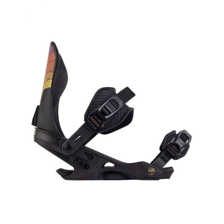 | Bow Strap Adjuster: | запатентована технологія Арбор "Bow-Strap" дозволяє дуже швидко застібуватися, так як попередньо вигнутий назовню стреп відходить від бази, щоб не заважати вам поставити черевик. |
