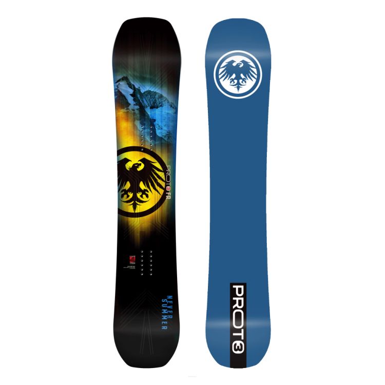 Новий Proto T3 FR є найуніверсальнішим та найпродуктивнішим фрірайд-сноубордом, який Never Summer коли-небудь розробляв. Це потужний та маневровий сноуборд призначений для райдерів, які вимагають від своєї дошки максимальної продуктивності на будь-якій місцевості. Це була перша модель, в якій компанія представила новий на той час та революційний прогин Triple Camber. Ця модель швидко стала улюбленцем серед райдерів усього світу та бестселлером в колекції NS. Інноваційні технології Hybrid Triple Camber та R.I.P. Edge Hold дозволяють легко маневрувати та виконувати ваші улюблені трюки з легкістю, а карбонові елементи підсилення та система демпфування гарантують комфорт та плавність ходу. Proto FR – це сноуборд, який зі своїм технічним пакетом космічних матеріалів, що можуть позмагатися з технологіями NASA. Завдяки сетбеку в 2 см (зміщення стійки), 5 мм тейперу (звуженню) та технології Early Nose Rise, Proto T3 FR забезпечує плавність ходу та контроль навіть на найскладніших ділянках та прекрасну пливучість у глибокому снігу. Без сумніву, це один з кращих варіантів на ринку!