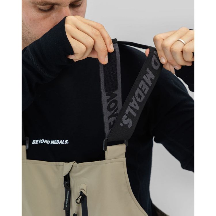 Брюки Beyond Medals Tech Bib 3L - это функциональные полукомбинезонные штаны созданные для активного катания и пребывания в сложных погодных условиях. Они подойдут для лыжников и сноубордистов, которым важны защита от влаги, комфорт и надежность в течение всего дня. Основные преимущества: мембрана 20kдля защиты от снега и дождя, высокая паропроницаемость - тело остается сухим даже во время движения, мембрана из переработанного полиэстера и экологическое PFC-free водоотталкивающее покрытие, проклеенные швы для дополнительной герметичности. Брюки изготовлены из трехслойной ткани, сочетающей прочность и легкость. Вентиляция с внутренней стороны брюк помогает регулировать температуру, а водостойкие молнии защищают от влаги. Регулируемые подтяжки и эластичная талия позволяют точно подогнать посадку. Несколько карманов на молниях позволяют удобно хранить необходимые мелочи.