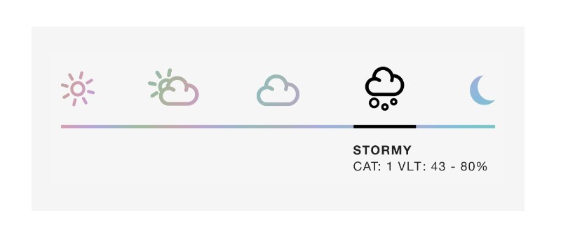 | Полностью солнечно | Частичное облачность | Мрачно | Штормовая погода | Плохое освещение | Фотохромные линзы |
