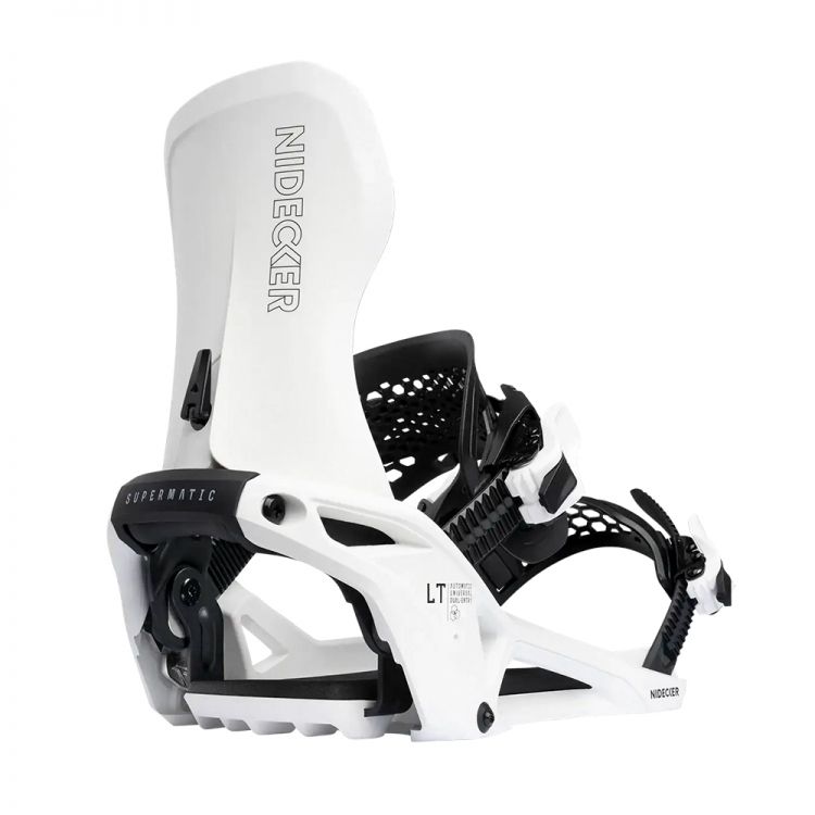 Нова версія відомих на весь світ швидкісних кріплень від компанії Nidecker - Supermatic® LT. Це наступний розділ у категорії швидкісних кріплень, що поєднує революційну зручність системи Supermatic з обтічним жорстким асиметричним хайбеком та надійною конструкцією стрепів. Ці кріплення забезпечують підвищену потужність у поворотах, гострішу реакцію на кант та рівень жорсткості, що ідеально підібраний для швидкісного катання на курорті або в парку. Ключові Особливості та Технології: