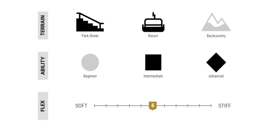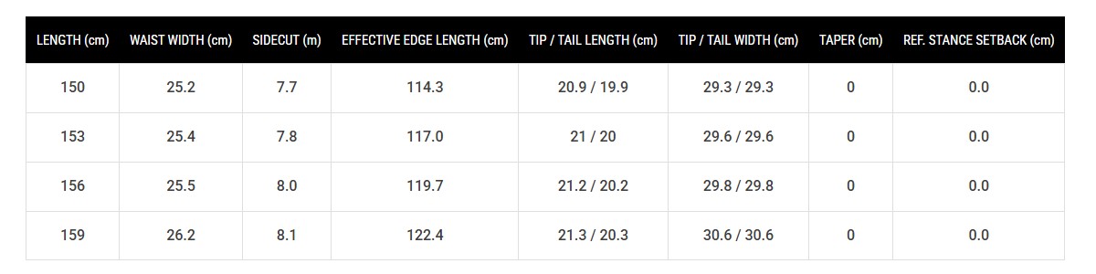 | Grip Tech: | особлива форма бокового вирізу з додаванням контактних точок у районі закладних. Така форма забезпечує ідеальне зчеплення зі снігом за будь-яких умов, так само робить повороти плавнішими і легшими, без надмірної чіпкості; |