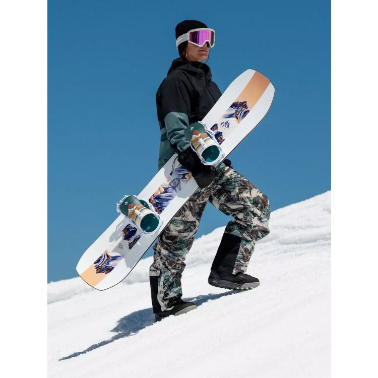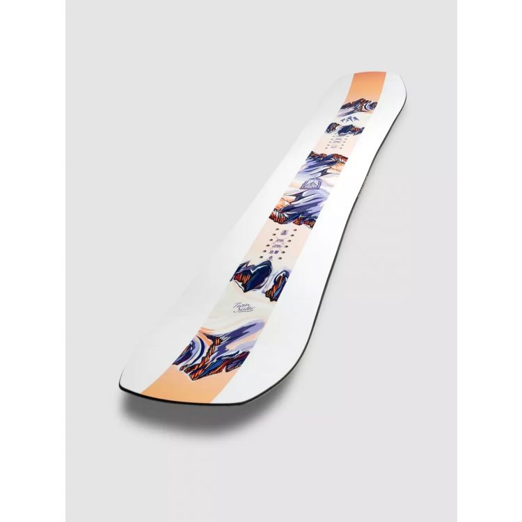 Jones Twin Sister 2026 – універсальна дошка для жінок, що поєднує в собі характеристики фрірайду, фрістайлу та катання на підготовлених трасах. Ця модель відрізняється винятковою плавучістю на пухкому снігу, чудово підходить для виконання трюків у сноу парку та забезпечує легке керування навіть під час їзди свіч (зворотня несвоя стійка). Завдяки профілю CamRock та середній жорсткості, Twin Sister дозволяє впевнено відчувати себе в будь-яких умовах. Технологічні конструкції забезпечують надійну підтримку та контроль навіть на високих швидкостях, такі як: Traction Tech 3.0, Sintered 8000 base, та фірмова технологія джонсів - 3D Contour Base 2.0, яка покращує плавучість та полегшує вхід у повороти. Twin Sister у 2026 отримав нову серцевину Master Core – повністю дерев'яна серцевина подвійної щільності зі співвідношенням павлонії до тополі 1:1, що робить серцевину легкою, але надзвичайно міцною та з хорошою амортизацією а також нове підсилення, технологію якого розроблено у співпраці зі швейцарською інженерною фірмою BComp. Конструкція стрингерів надає додаткову пружність дошки та зменшує непотрібні вібрації. Підсумовуючи все вищесказане, Jones Twin Sister - це чудовий вибір для жінок, які цінують універсальність, високу якість та комфорт.